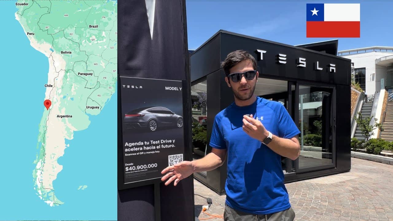 Join us on a recent holiday trip to Santiago, Chile, where we get a glimpse of the local Tesla showrooms, models offered, and pricing in Chilean pesos.