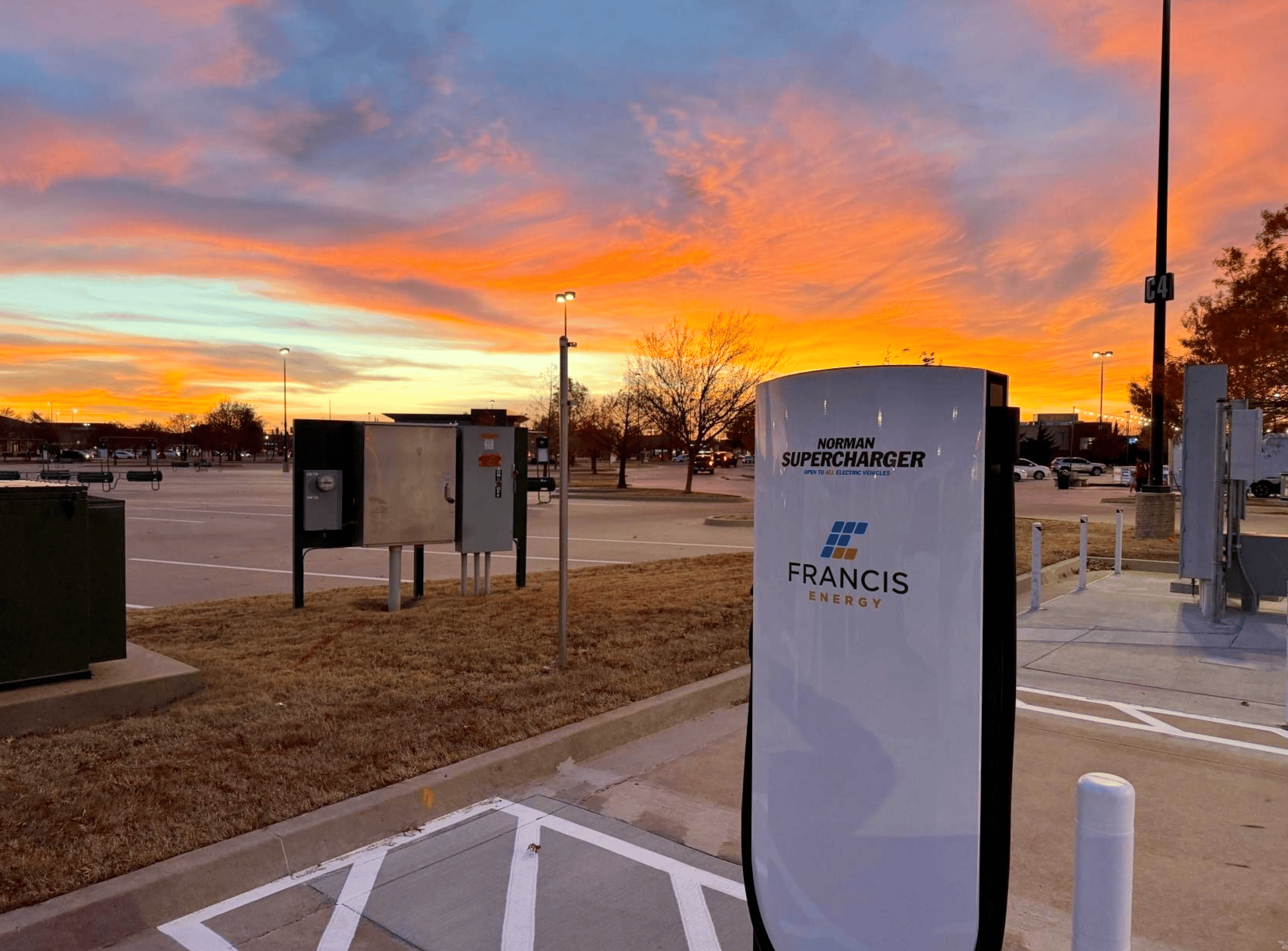 The first Francis Energy location in Norman, Oklahoma, features 4 stalls with 325 kW charging and Magic Docks for non-Tesla EVs at $0.44/kWh.