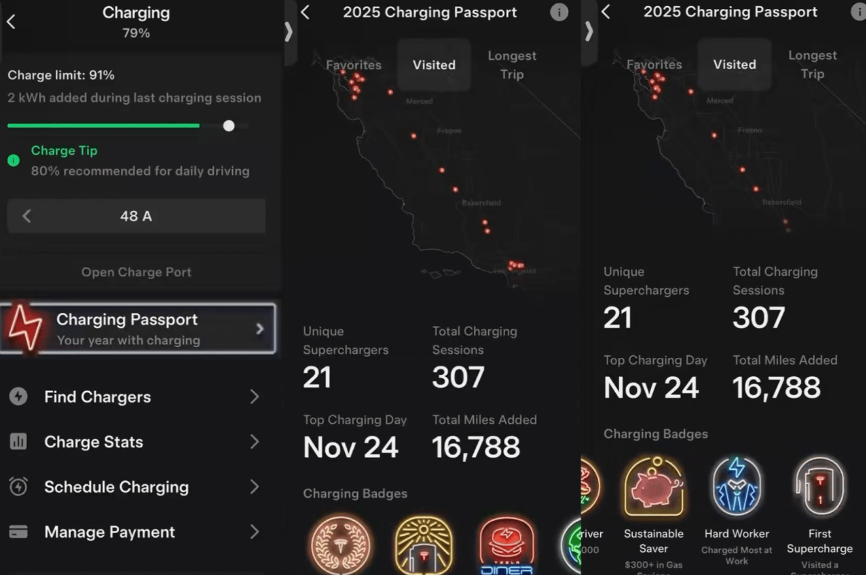 Tesla is rolling out a new feature called Charging Passport to give owners a 2025 recap of charging activity and Supercharger locations visited. Think of this as a recap like the one you get from music streaming services, but for every supercharging activity. We think this is a neat new feature that gamifies charging and encourages users to travel and charge more.